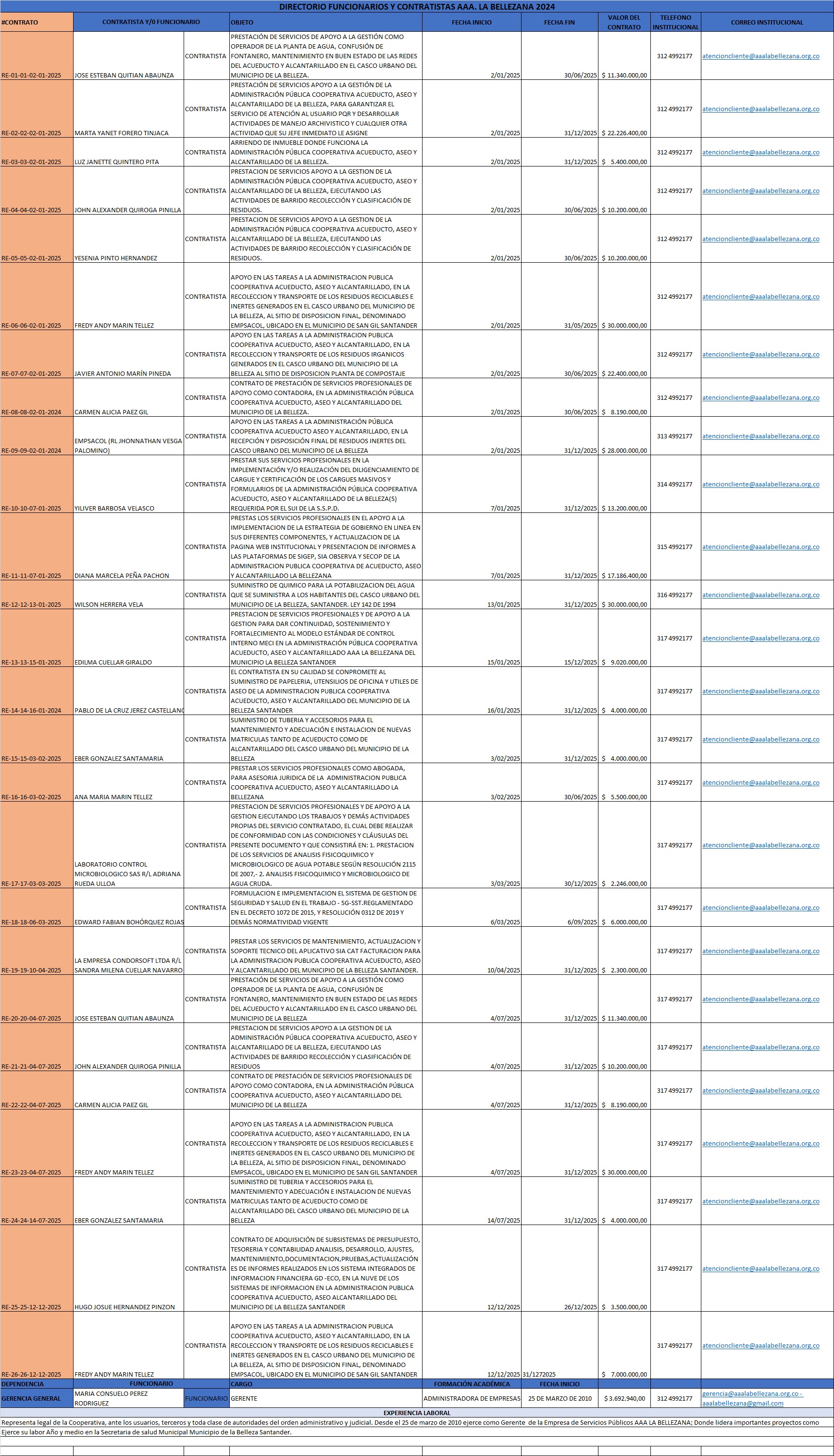 PUBLICA COOPERATIVA ACUEDUCTO, ASEO Y ALCANTARILLADO DEL MUNICIPIO DE LA BELLEZA SANTANDER.