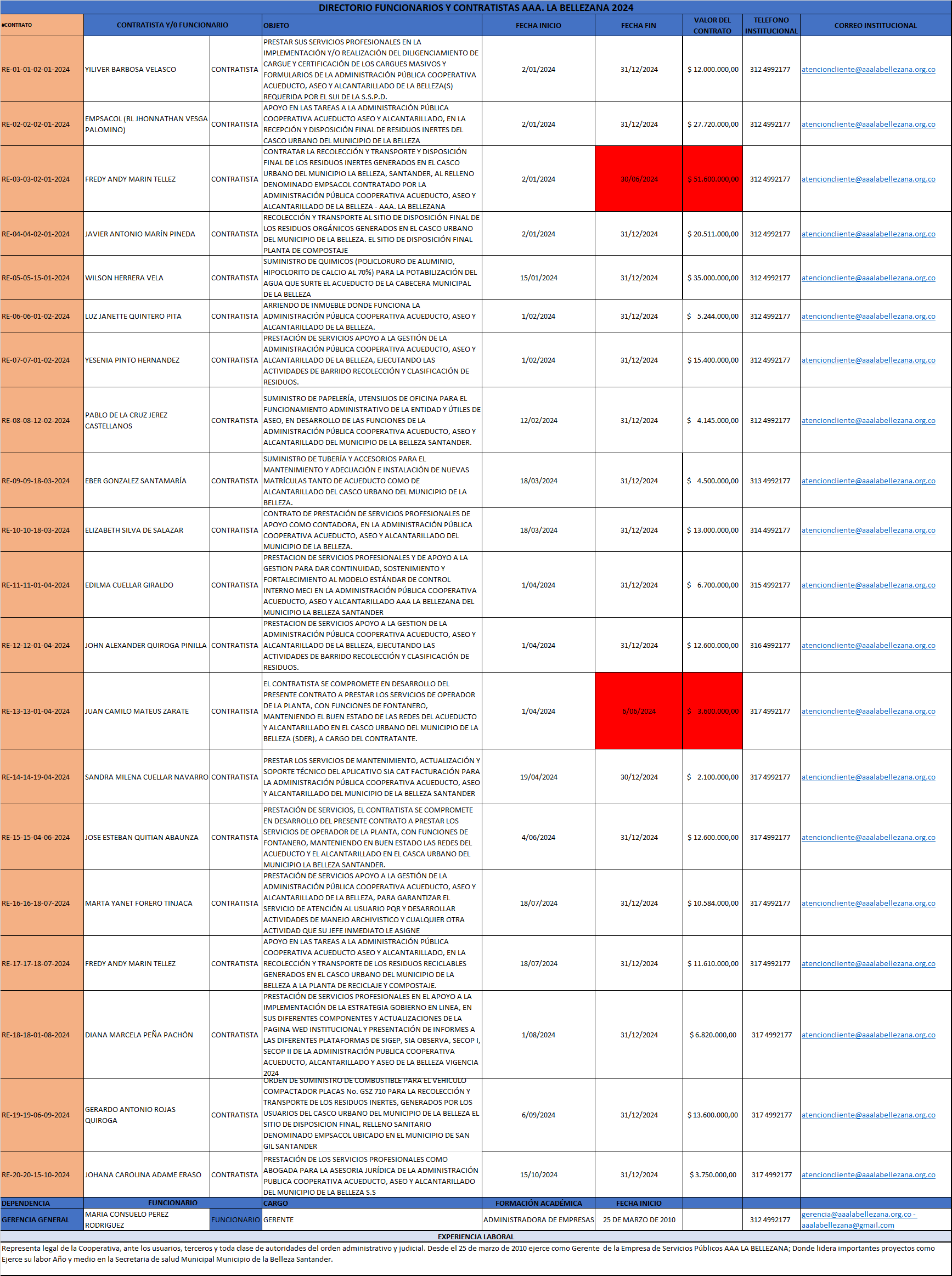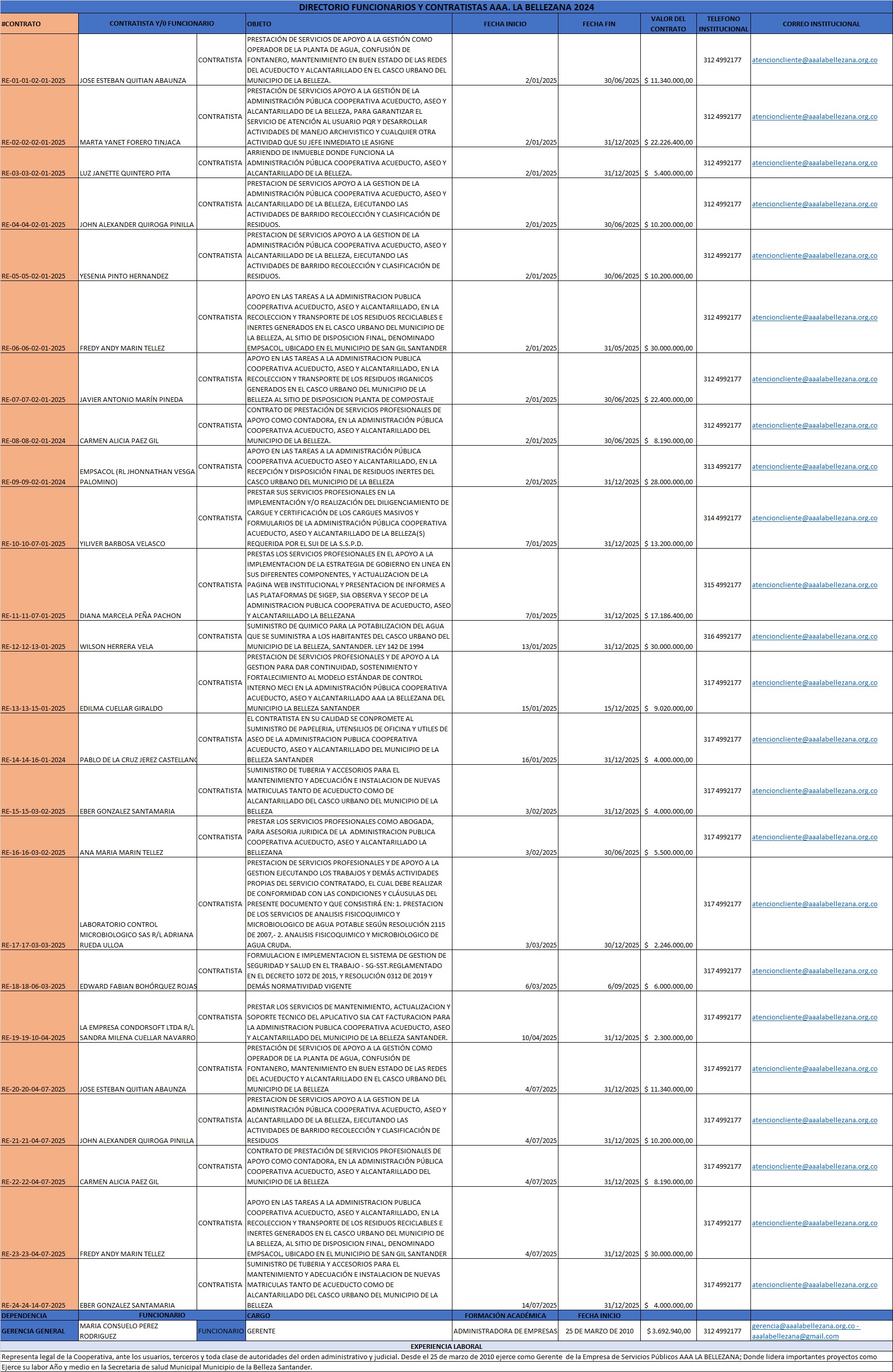 OBJETO: PRESTACIÓN DE SERVICIOS APOYO A LA GESTIÓN DE LA ADMINISTRACIÓN PÚBLICA COOPERATIVA ACUEDUCTO, ASEO Y ALCANTARILLADO DE LA BELLEZA,